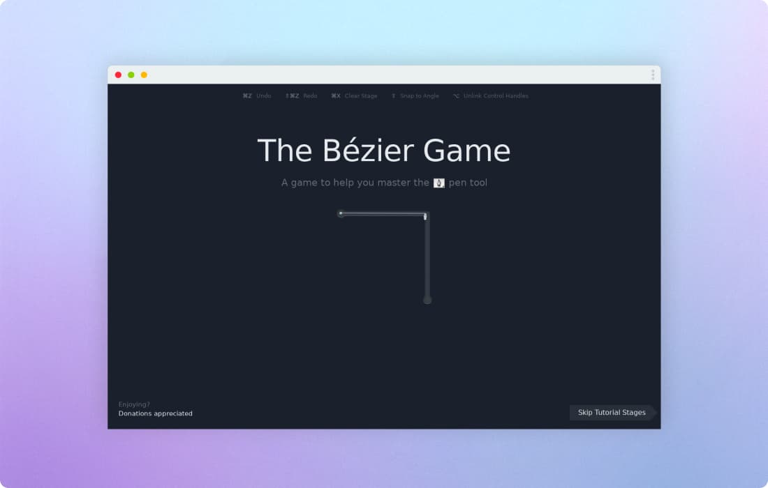 The Bézier Game est un site ludique et pédagogique qui vous permettra de maîtriser l’outil plume et de tracer des courbes de Bézier avec aisance et élégance. Que vous soyez débutant ou expérimenté en dessin vectoriel, The Bézier Game vous aidera à améliorer votre technique et à relever des défis stimulants !